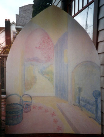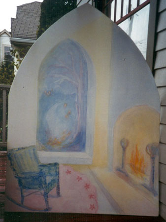 For wall murals and also for the boards, I use the Lazure technique - a wall treatment of layers of color, like clouds. The process is used in Europe and increasingly in the USA. The result can be a light filled space of moving color or pulled together into images.