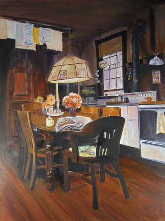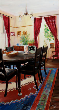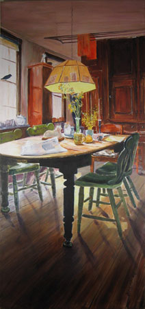It has remained much the same for four generations. I miss being there. These paintings are often large (6 x 3) and let me feel I can almost walk into the spaces and the memories. It's very rewarding to share these images with others who also grew up loving an old house.